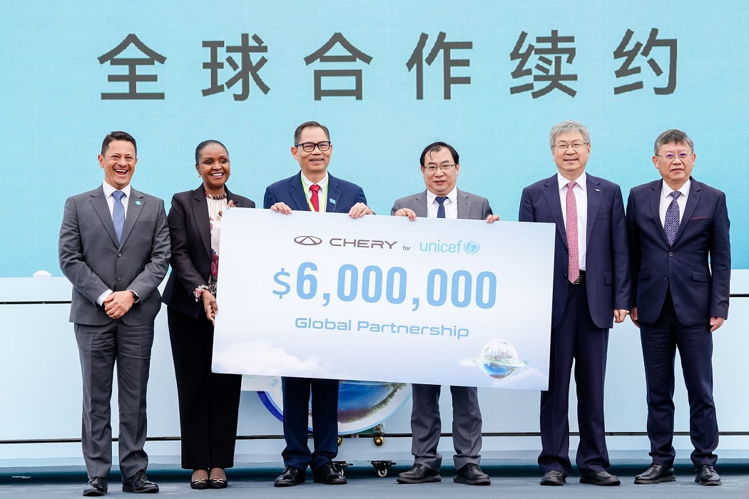 图为奇瑞宣布将向联合国儿童基金会(UNICEF)再次捐赠600万美元